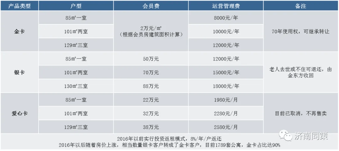 金东方收费模式:会员费+运营管理费,目前以金卡和银卡两种形式出售公寓使用权,每年收取运营管理费,其中金卡可继承转让不退还,银卡不住可退还。